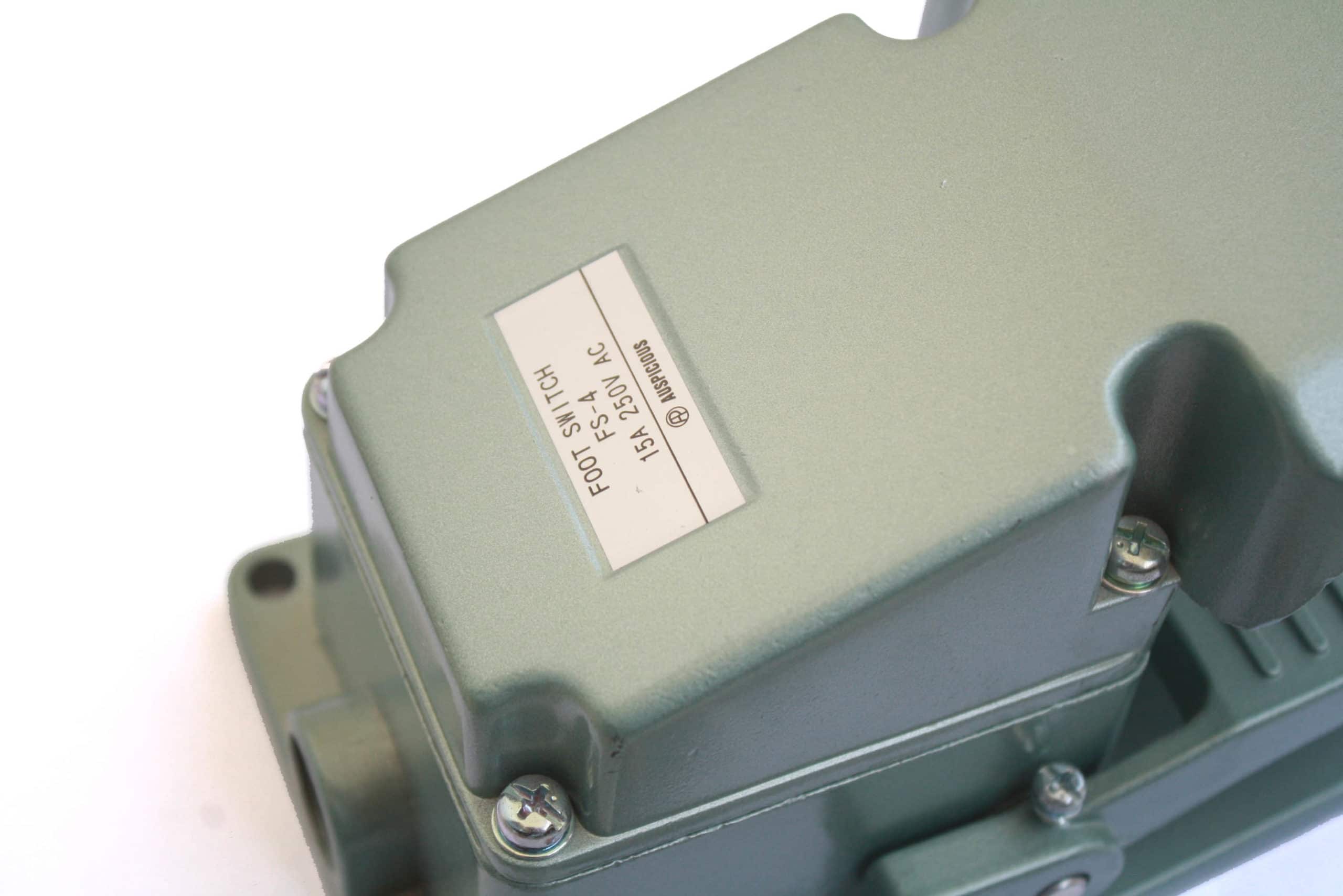 HomeProductsFoot SwitchesFS4 Industrial Foot Switch 15A 250V Metal Body Auspicious FS4 Industrial Foot Switch 15A 250V Metal Body Auspicious 15A Miniature Foot Switch Make: Auspicious Country of Origin: Taiwan Category: Foot Switches Tag: Foot Switch Product ID: 574 Download Images Description Description Heavy Duty Foot Switch Range of Product: FS Series Connection Rating: 15A 250VAC Contact Type: 1A1B Accessory: Cable Gland (No Cable) Enclosure Material: Aluminum Related products FS2 Foot Operated Switch 15A 250V Brand: Auspicious